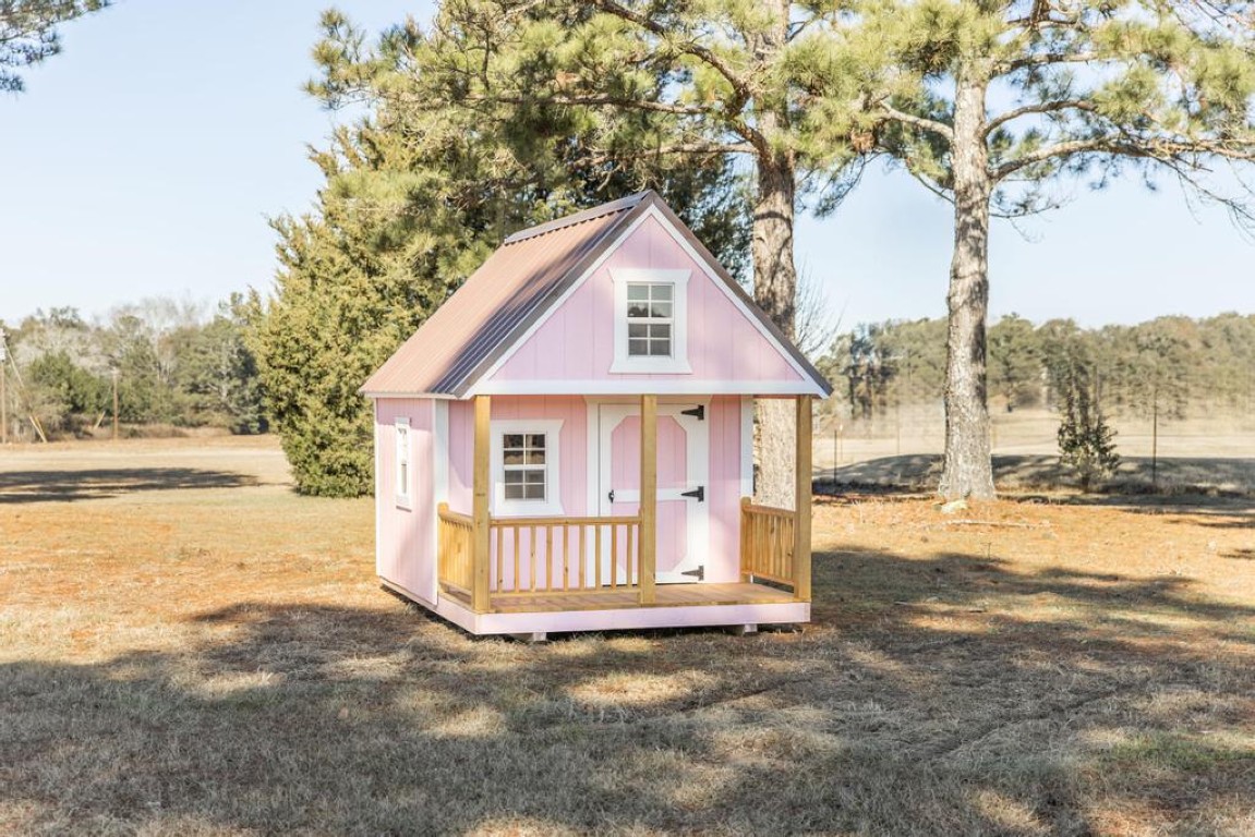 Every child’s playhouse dream! Our 8×12 playhouse comes painted and features a durable metal roof for long, lasting fun. Inside, a small loft with a ladder provides extra space for imaginative play, making it the perfect backyard hideaway for kids to explore, create, and enjoy.